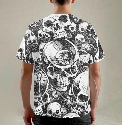 Мрачная готическая композиция в викторианском стиле, представляющая собой плотный коллаж из множественных черепов и костей в монохромной чёрно-белой гамме. Принт выполнен в технике детальной гравюры или эстампа с высокой степенью проработки каждого элемента. Композиция построена как хаотичное нагромождение человеческих черепов различных размеров и ракурсов, создающих эффект оссуария или катакомб. Черепа плотно прилегают друг к другу, образуя сплошную массу, где каждый элемент прорисован с анатомической точностью. Видны все характерные детали костной структуры: глазницы, носовые отверстия, зубные ряды, височные кости и затылочные части. Некоторые черепа смотрят прямо, другие повёрнуты в профиль или три четверти, создавая динамику и объём. Графика выполнена в технике штриховки и перекрёстной тушёвки, характерной для классической гравюры. Игра света и тени создаёт драматический эффект и подчёркивает трёхмерность форм. Стиль напоминает работы старых мастеров анатомии и мемориальную символику vanitas. Принт идеален для любителей готической эстетики, dark art, викторианского символизма и философских размышлений о бренности существования. Провокационный и элегантный дизайн для ценителей мрачного романтизма.