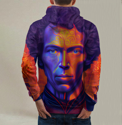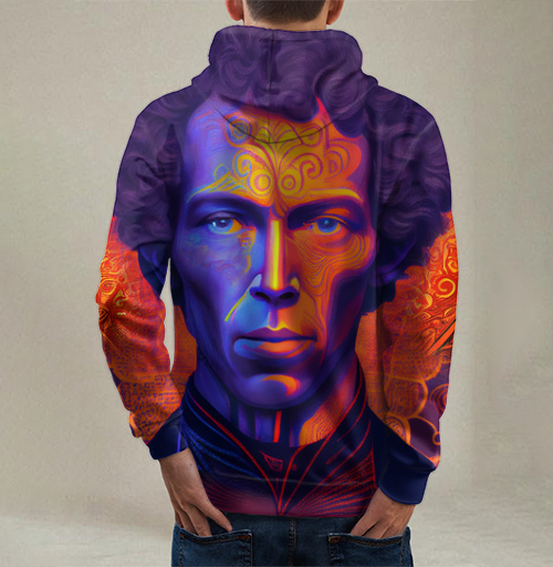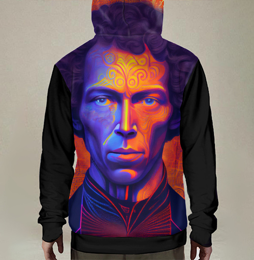Толстовка с капюшоном мужская на молнии 3Д психоделический пушкин