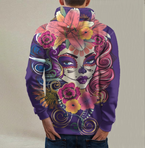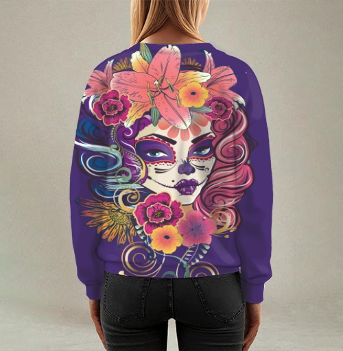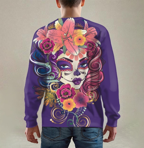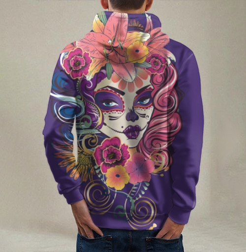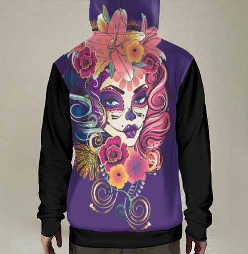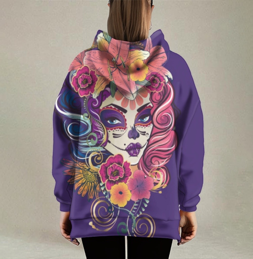 Этот принт идеально подойдет для поклонников латиноамериканской культуры, любителей праздника Dia de Muertos и тех, кто ценит символизм жизни и смерти в искусстве. Дизайн символизирует память о предках, празднование жизни и уважение к традициям, передавая энергию мексиканского праздника. Композиция привлекает внимание своей яркостью, детальностью исполнения и культурной глубиной образа, создавая атмосферу мистики и торжества одновременно.