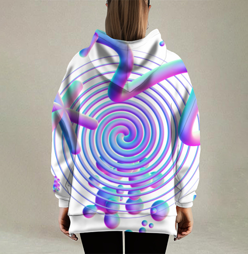 Футуристическая биоморфная композиция, сочетающая элементы научной визуализации и абстрактного искусства в яркой неоновой палитре. Центральным элементом выступает гипнотическая спираль в сине-фиолетово-розовых градиентах, напоминающая одновременно галактический вихрь, структуру ДНК и микроскопический организм. Концентрические круги создают иллюзию движения и глубины, затягивая взгляд в бесконечную воронку.