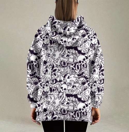 Этот дизайн понравится фанатам хоррор-эстетики, любителям Хэллоуина и тем, кто ценит альтернативную культуру с долей черного юмора. Идеален для людей, которые не боятся выделяться и предпочитают яркую, провокационную графику милым узорам. Паттерн передает дух карнавального ужаса, где страшное становится веселым, а мрачное — притягательным.