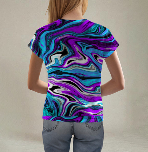 Женская футболка 3D с принтом Синяя жидкость 177393, размер 40 (XS) — 50 (2XL)
