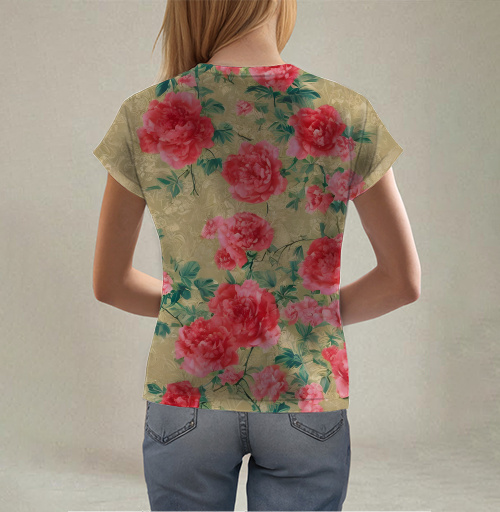 Футболка женская полиэстер цветочный паттерн, цветочный мотив. –