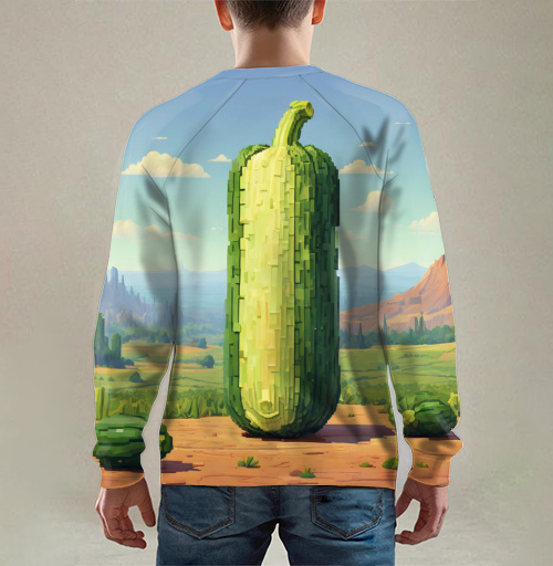 сюрреалистичный принт с гигантским кабачком-ковбоем в стилистике американского дикого запада. абсурдистская композиция выполнена в технике гиперреализма с элементами цифровой живописи: массивный зелёный кабачок в ковбойской шляпе величественно возвышается на фоне пустынного ландшафта прерий. детальная прорисовка текстуры овоща с характерными продольными рёбрами, естественными оттенками от тёмно-зелёного до салатового и коричневой шляпой создаёт фотореалистичный эффект. панорамный фон демонстрирует классический вестерн-пейзаж: рыжие скалистые горы на горизонте, бескрайние золотистые прерии, красноватая пустынная почва с редкой растительностью и ярко-голубое небо с белыми облаками. масштаб кабачка подчёркивается маленькими кактусами у основания. концептуальный дизайн объединяет овощную тематику с вестерн-эстетикой, создавая уникальный юмористический образ "самого быстрого кабачка на диком западе". мягкое естественное освещение и реалистичные тени добавляют достоверности абсурдной сцене. идеален для любителей сюрреализма, фанатов вестернов, ценителей абсурдного юмора, поклонников концептуального искусства и тех, кто предпочитает неординарные принты с философским подтекстом. подойдёт людям с оригинальным чувством юмора и нестандартным мышлением.