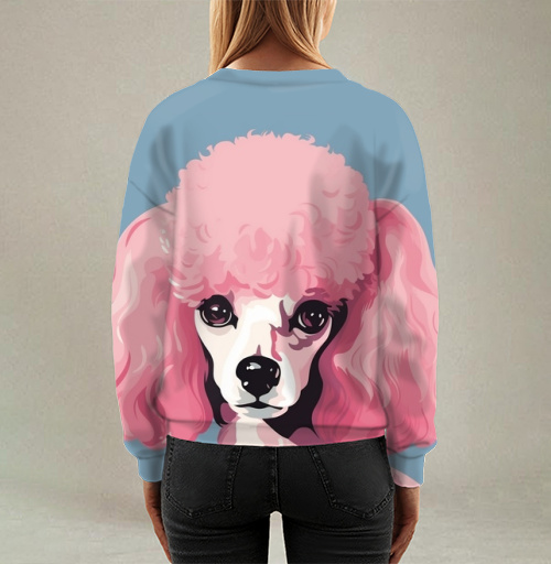 Свитшот женский оверсайз без капюшона с принтом розовый пудель