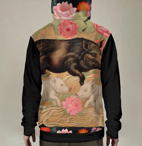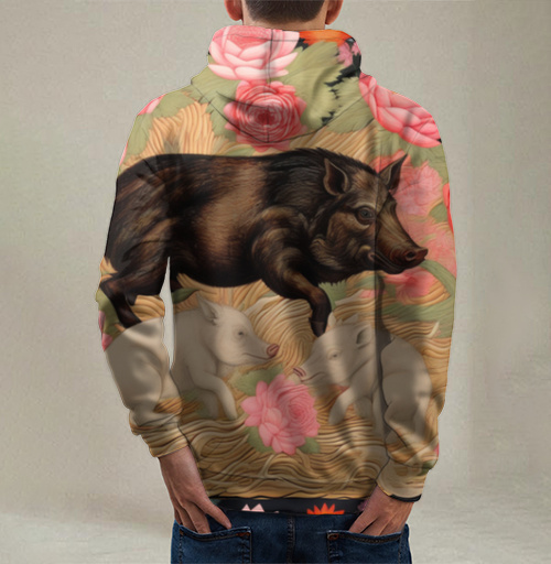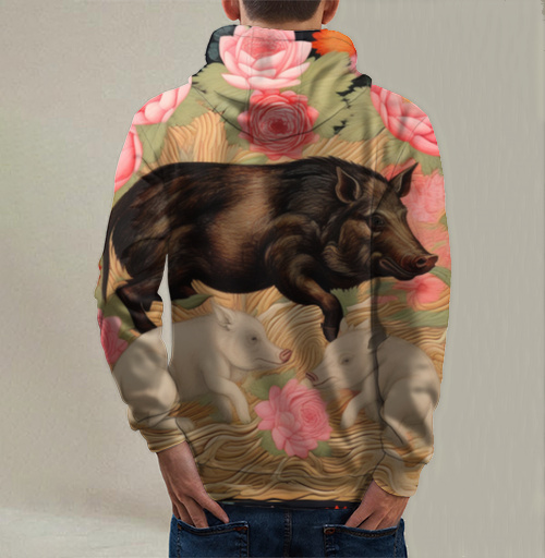 Толстовка с капюшоном мужская на молнии 3Д семья диких кабанов
