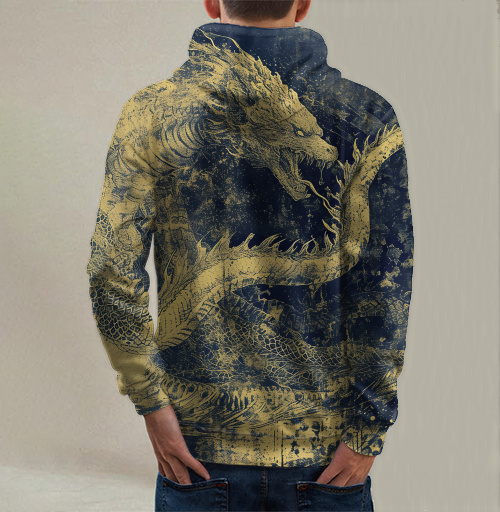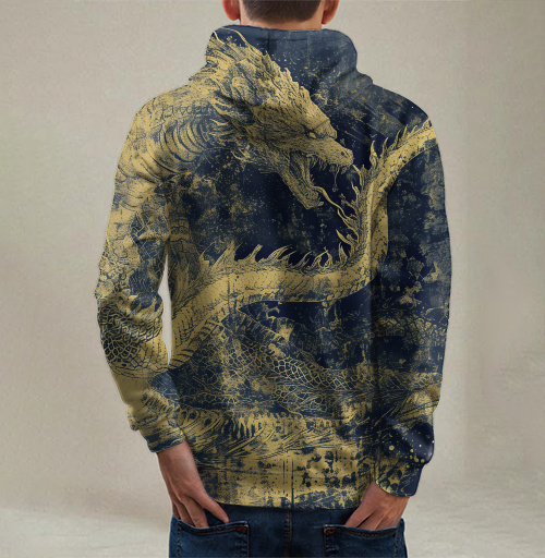 В восточной традиции дракон символизирует мудрость, силу, благородство и удачу - это существо высшего порядка, приносящее процветание. Данный принт идеально подойдёт ценителям восточной философии, любителям мифологии и людям с утончённым художественным вкусом. Дизайн привлечёт тех, кто ищет глубокий символизм в визуальных образах и ценит сочетание традиционной иконографии с современной эстетикой. Вживую золотое свечение создаёт завораживающий эффект, особенно при правильном освещении, когда принт буквально оживает, излучая благородство и мистическую энергию.