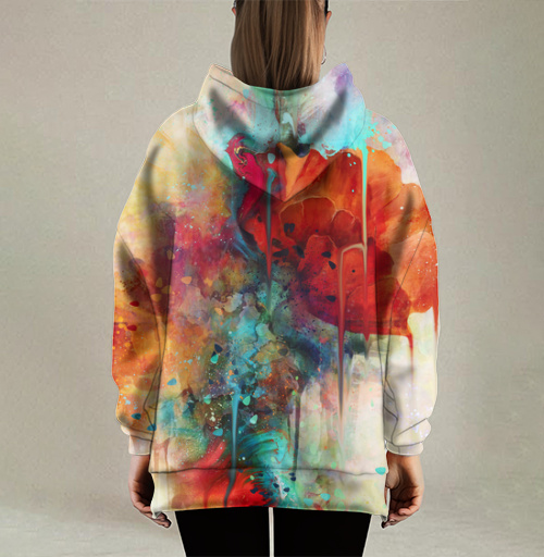 Худи оверсайз женское с капюшоном 3Д купить – абстракция акварельная –