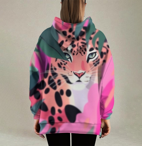 Принт символизирует дикую природу, свободу и необузданную энергию джунглей в современной интерпретации. Леопард традиционно ассоциируется с грацией, силой, независимостью и уверенностью. Неоновая палитра добавляет урбанистический акцент, трансформируя классический анималистический сюжет в актуальное произведение стрит-арта. Такой дизайн идеален для смелых личностей, ценящих яркость, экзотику и современную эстетику.