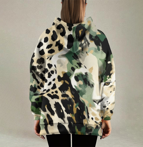 Худи оверсайз женское с капюшоном 3Д купить – леопард в акварельном плетении –