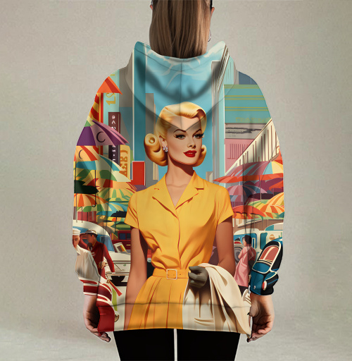 Худи оверсайз женское с капюшоном 3Д купить – девушка в желтом постер из пятидесятых –